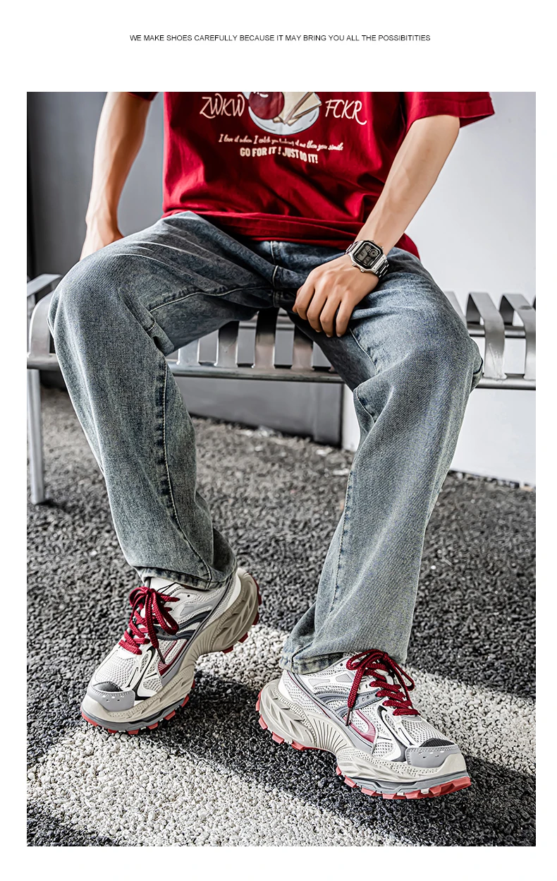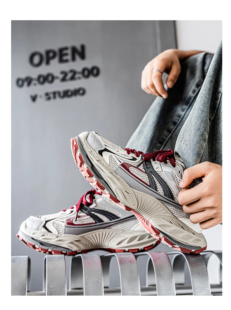 Sports and leisure shoes, men's shoes, marathon oversized air cushioned shoes, fly woven all season rubber, wear-resistant, anti
